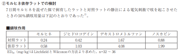 これの通りだとすると、デキストロメトルファンはコデインとは全然同等ではないですね。約1/3程度の強さです。