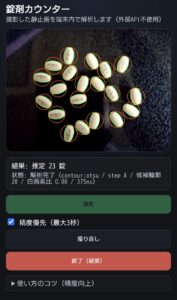 各錠剤をそれぞれ離してきれいに並べないときちんと判定できないのですが、それなら自分で数えた方が早いと思います…